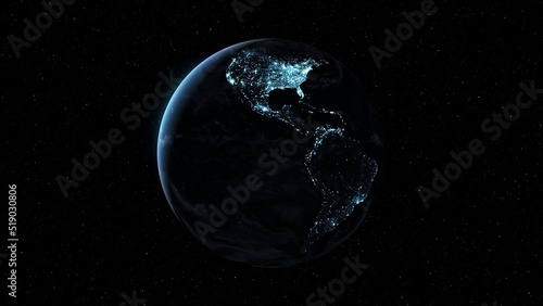 Wall mural : Planet earth with realistic geography surface and orbital 3d cloud atmosphere - outer space view of