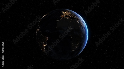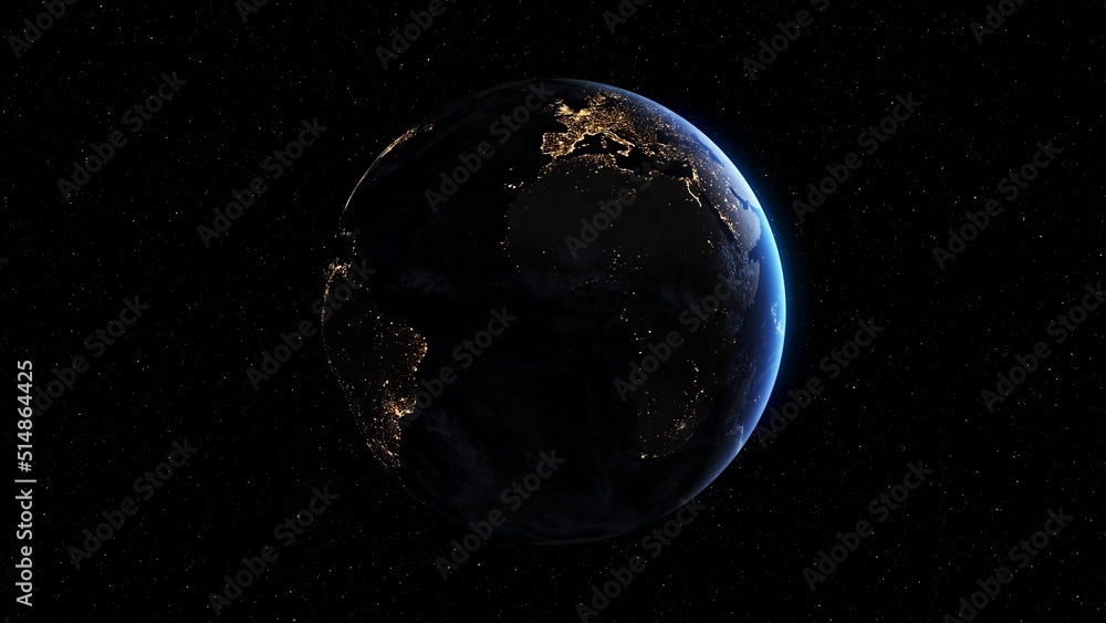 Planet earth with realistic geography surface and orbital 3d cloud atmosphere - outer space view of Wall mural