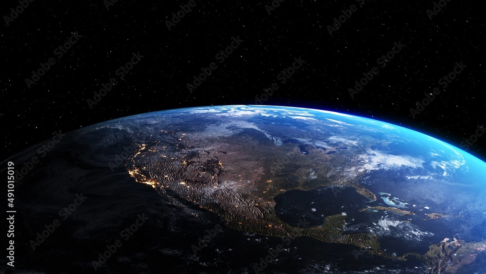 Wall mural planet earth with realistic geography surface and orbital 3d cloud atmosphere . outer space view of  - Wall murals Wall mural planet earth with realistic geography surface and orbital 3d cloud atmosphere . outer space view of - Wall murals