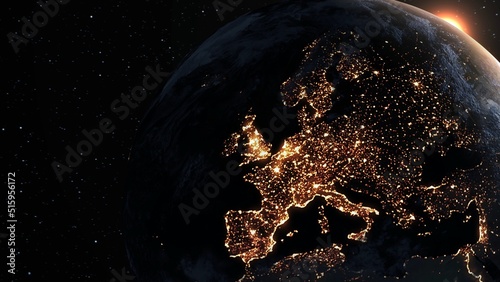 Wall mural : Planet earth with realistic geography surface and orbital 3d cloud atmosphere - outer space view of