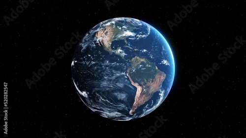 Wall mural : Planet earth with realistic geography surface and orbital 3d cloud atmosphere - outer space view of