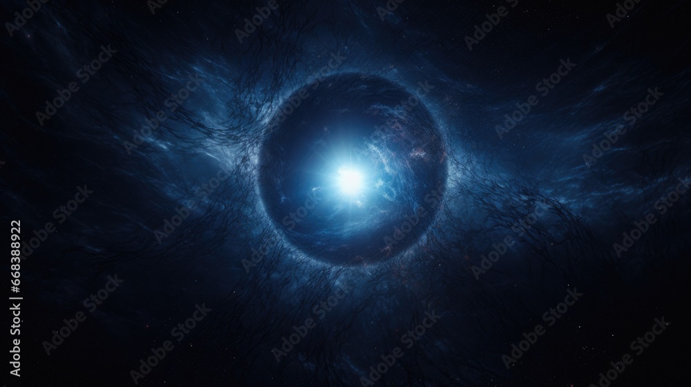 Wall mural planet in space. blue star formed in an eclipse. abstract galaxy. colorful space galaxy cloud nebula