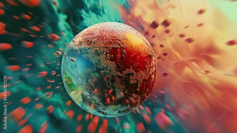 Wall mural planet is shown in a space with many red and blue objects. the planet is surrounded by a lot of debr - Wall murals Wall mural planet is shown in a space with many red and blue objects. the planet is surrounded by a lot of debr - Wall murals