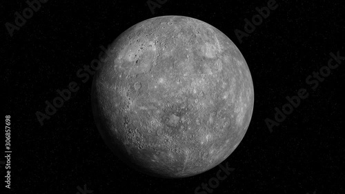 Wall mural : Planet mercury rotating in space, solar system world in front of the stars, 4k loop
