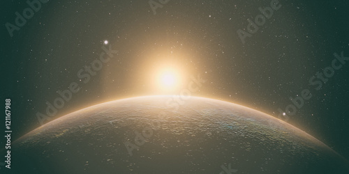 Wall mural : Planet mercury with sunrise on the space background, 3d render -