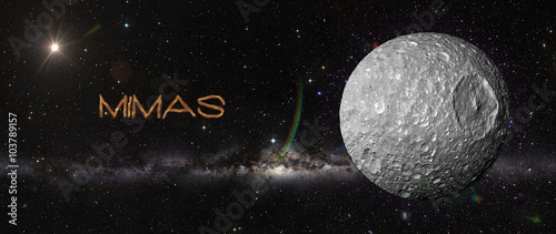 Wall mural planet mimas in outer space.