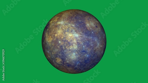Wall mural planet of mercury is rotating in green screen. loop video