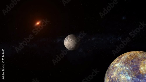 Wall mural Planet orbit in planetary system proximity to exploding supernova, science fiction animation. Contains public domain image by Nasa