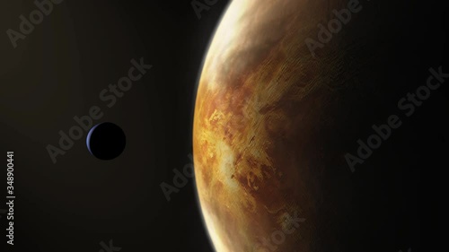 The watermark will not be included on Wall mural.: Planet venus in a slow spin with the atmosphere of the surface being highlighted from the sun as sat