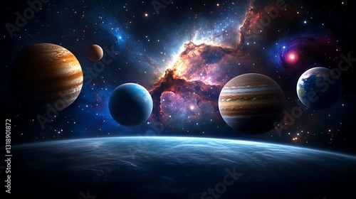 Wall mural : Planetary alignment planets align, space background, cosmos usage
