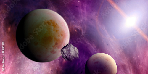 Wall mural planets and exoplanets of unexplored galaxies. sci-fi. new worlds to discover. colonization and expl