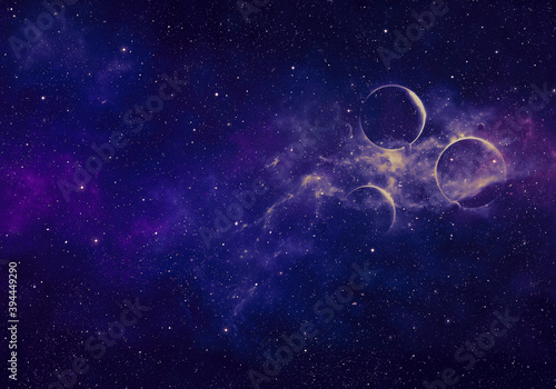 The watermark will not be included on Wall mural.: Planets in outer space with nebula and stars