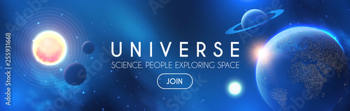 Wall mural planets in universe with star, nebula and galaxy lights. 3d realistic space. cosmos design.