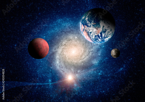 Wall mural : Planets of the solar system against the background of a spiral galaxy in space - elements of this ima