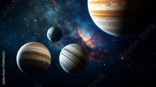 Wall mural planets orbiting in deep space creating galaxy backdrop, space exploration use - Wall murals Wall mural planets orbiting in deep space creating galaxy backdrop, space exploration use - Wall murals