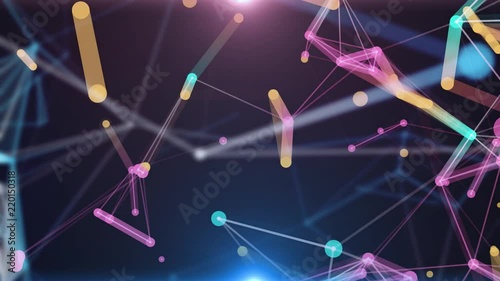 Wall mural plexus of abstract multicolored geometrical lines with moving triangles and dots on a black backgrou
