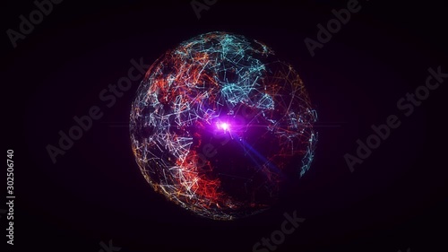 Wall mural plexus of abstract violet lines with moving triangles and dots. sunrise skyline. rotating animation. - Wall murals Wall mural plexus of abstract violet lines with moving triangles and dots. sunrise skyline. rotating animation. - Wall murals