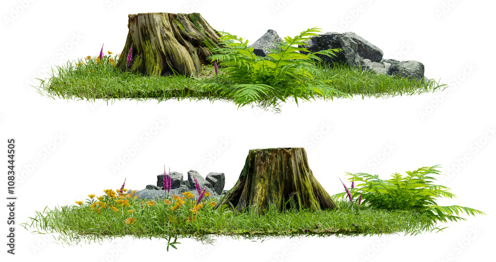 The watermark will not be included on Wall mural.: Png collection grass field, no background easy to move by drag and drop to main project, 3d illustra
