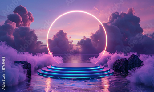 The watermark will not be included on Wall mural.: Podium for displaying products background-generative ai