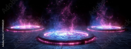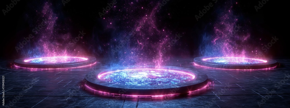 The watermark will not be included on Wall mural.: Podium light hologram tech technology background portal circle cyberpunk effect digital - game elemen