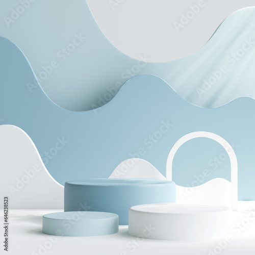 Wall mural podium with shape curve on background for product presentation. 3d illustration.