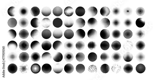 Wall mural : Point halftone circle vector set - round monochrome gradient shapes black dots abstract icons isolate