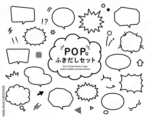 The watermark will not be included on Wall mural.: Popなふきだしのセット 吹き出し イラスト ポップ アメコミ風 飾り フレーム 見出し あしらい