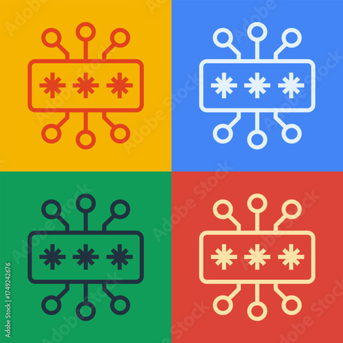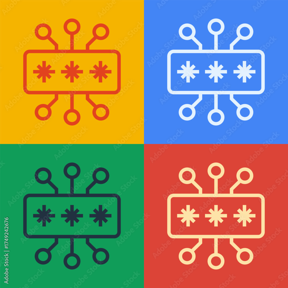 Wall mural pop art line cyber security icon isolated on color background. closed padlock on digital circuit boa - Wall murals Wall mural pop art line cyber security icon isolated on color background. closed padlock on digital circuit boa - Wall murals
