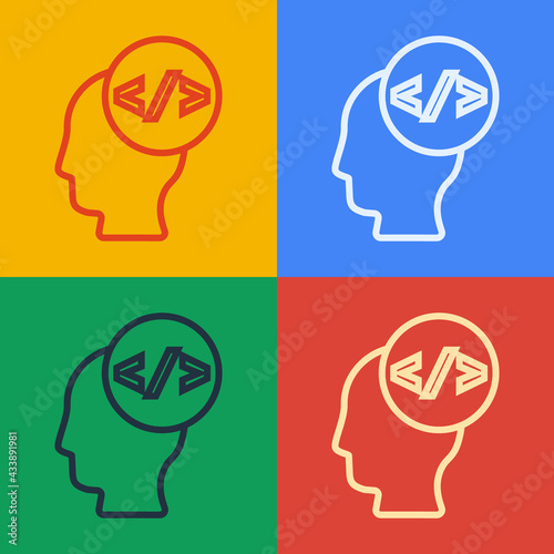 Pop art line web design and front end development icon isolated on color background - vectorWall mural