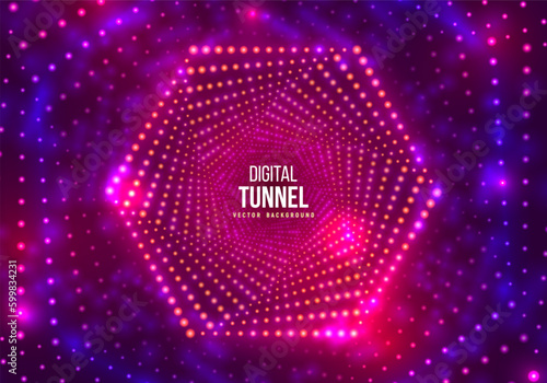 Wall mural portal with light effects. neon particles tunnel. abstract technology background. vector illustratio