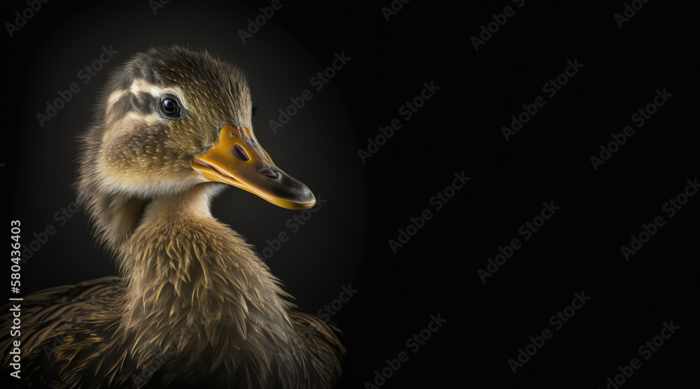 Wall mural portrait of a duck, photo studio set up with key light, isolated with black background and copy spac - Wall murals Wall mural portrait of a duck, photo studio set up with key light, isolated with black background and copy spac - Wall murals