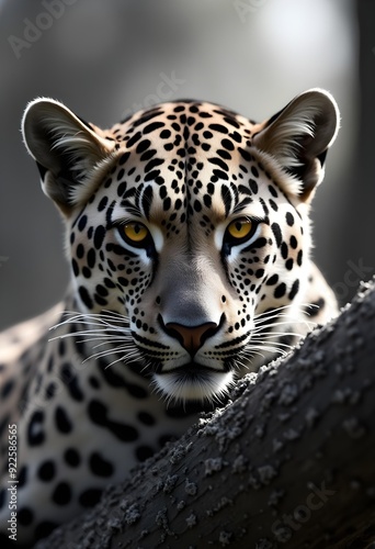 The watermark will not be included on Wall mural.: Portrait of a leopard on a tree - -