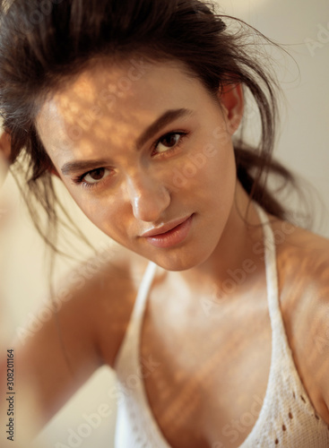 Wall mural : Portrait of a model on a sunny day shadows fall on the face and create a beautiful picture