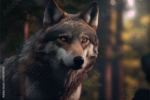 Wall mural portrait of a wolf lupus in the forest hunting. generative ai