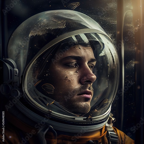 The watermark will not be included on Wall mural.: Portrait of an astronaut in a spacesuit - high-tech astronaut from the future - the concept of space t