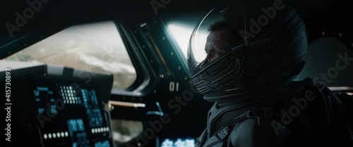 The watermark will not be included on Wall mural.: Portrait of caucasian male astronaut inside spaceship cockpit - sci-fi space exploration concept - sho