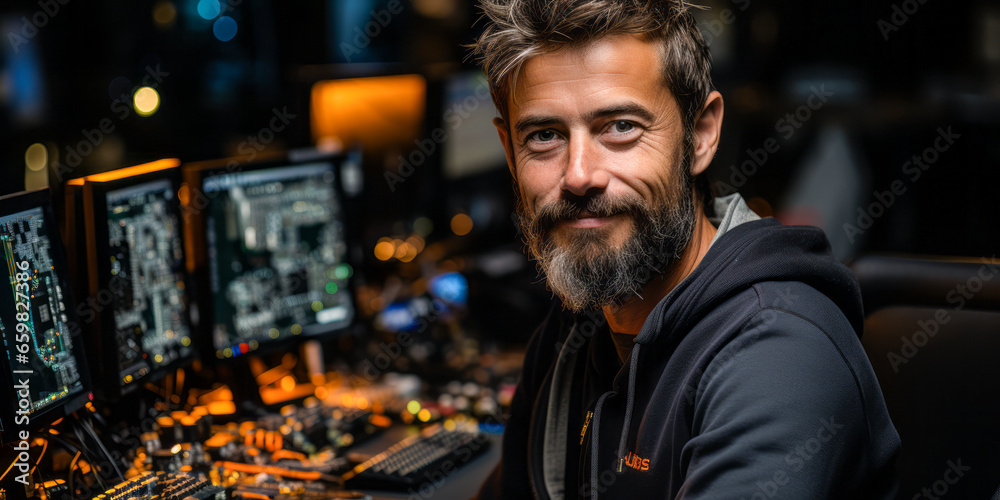 Wall mural portrait of computer software engineer. develop, create, modify computer applications software, spec - Wall murals Wall mural portrait of computer software engineer. develop, create, modify computer applications software, spec - Wall murals