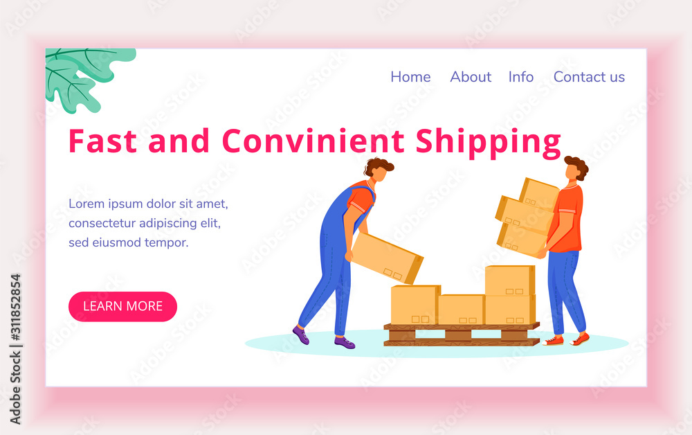 The watermark will not be included on Wall mural.: Post office service landing page vector template - fast and convient shipping website interface idea