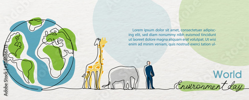 Wall mural : Poster's campaign of world environment day in one line and flat style with vector design -