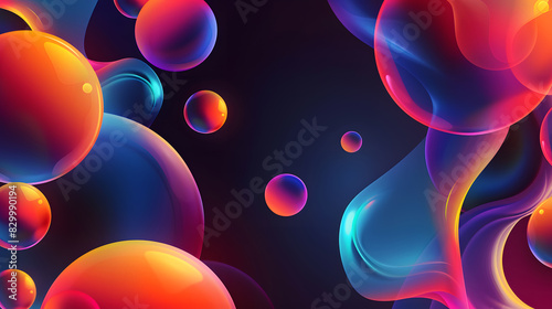 The watermark will not be included on Wall mural.: Poster collection with abstract colorful gradient sphere - glowing vibrant liquid gradient shape on d