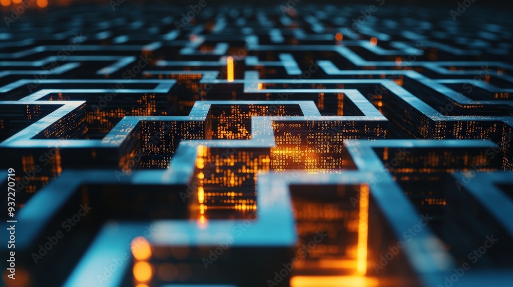 Wall mural poster depicting a labyrinth with javascript code guiding the way to convey programming problem-solv - Wall murals Wall mural poster depicting a labyrinth with javascript code guiding the way to convey programming problem-solv - Wall murals