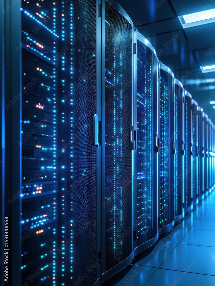 Wall mural powerful data center server racks providing high performance scalable and energy efficient computing - Wall murals Wall mural powerful data center server racks providing high performance scalable and energy efficient computing - Wall murals