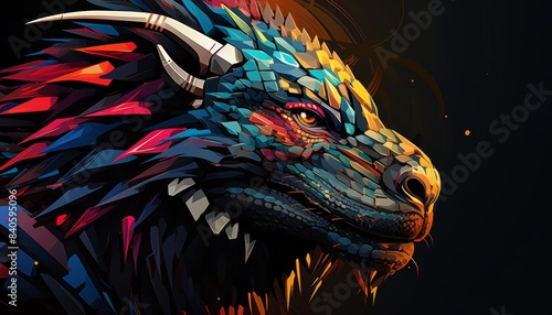 The watermark will not be included on Wall mural.: Predator technology flat design side view advanced theme animation triadic color scheme