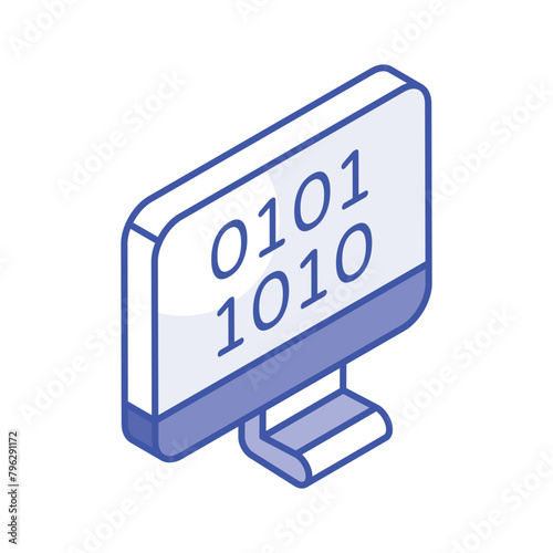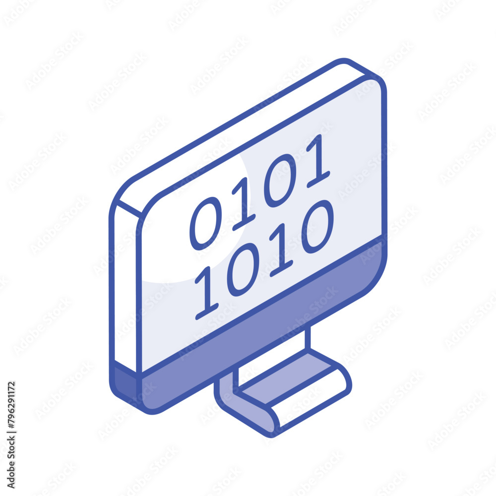Wall mural : Premium isometric icon of binary coding in trendy style