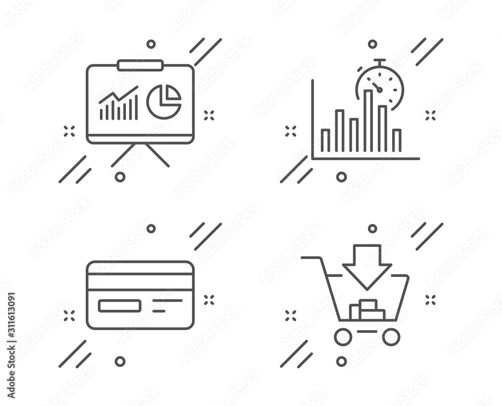 Wall mural presentation, report timer and credit card line icons set. shopping sign. board with charts, growth  - Wall murals Wall mural presentation, report timer and credit card line icons set. shopping sign. board with charts, growth - Wall murals