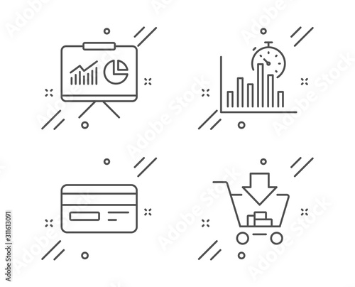 Wall mural : Presentation, report timer and credit card line icons set - shopping sign - board with charts, growth