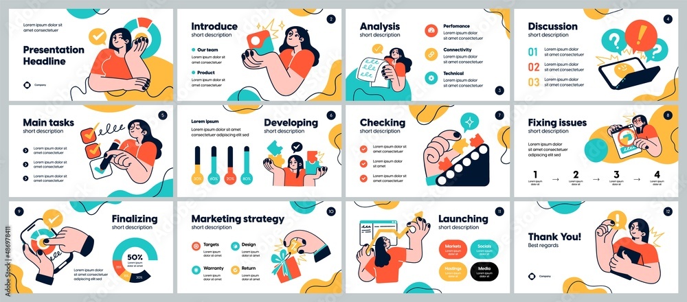 The watermark will not be included on Wall mural.: Presentation and slide layout background - design template with business people - use for business ann