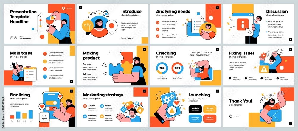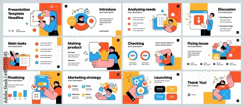 The watermark will not be included on Wall mural.: Presentation and slide layout background - design template with business people - use for business ann