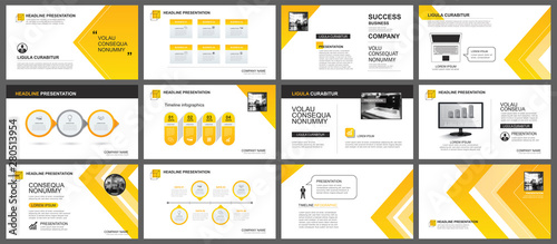 Wall mural presentation and slide layout background. design yellow and orange gradient arrow template. use for