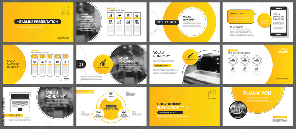 Presentation and slide layout background - design yellow and orange gradient circle template - use forWall mural
